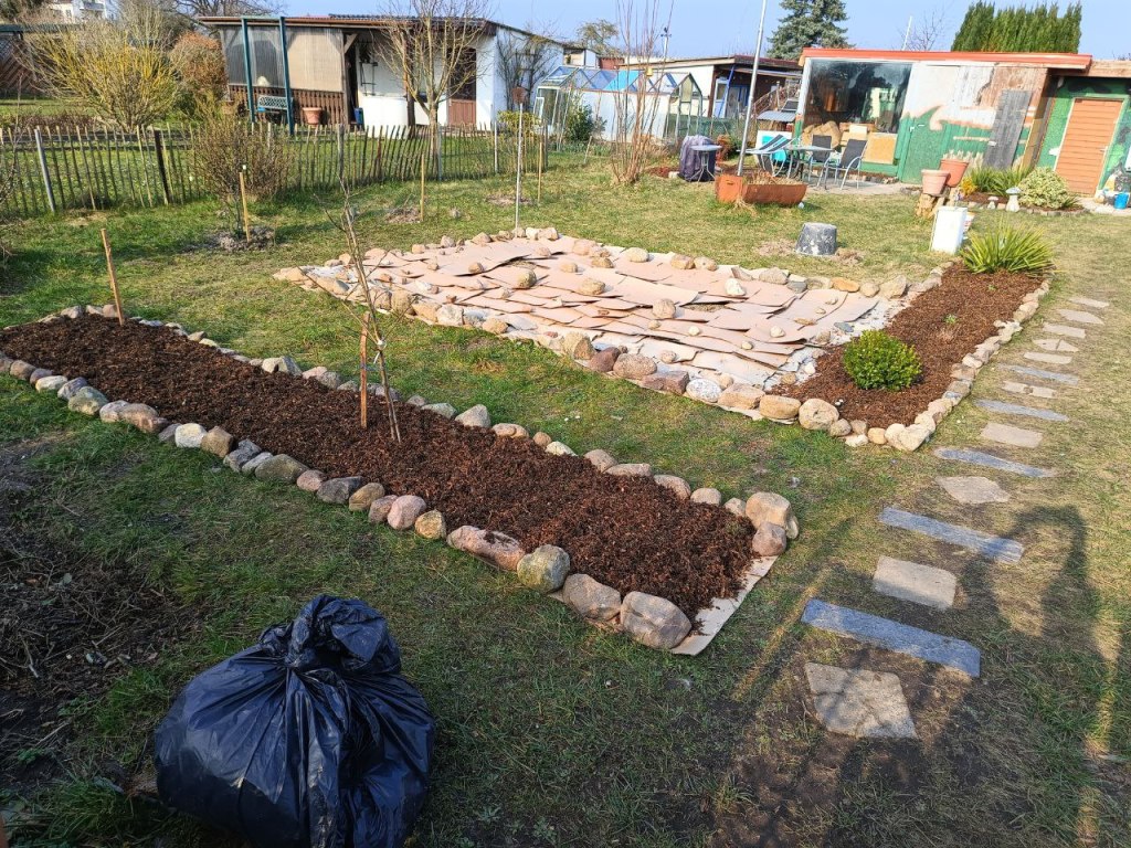 Im Garten selber haben wir angefangen, die Beete mit Feldsteine zu umranden und diese auch mit Hackschnitzel durch zu mulchen, es sieht dann immer gleich viel schöner aus. 🤩