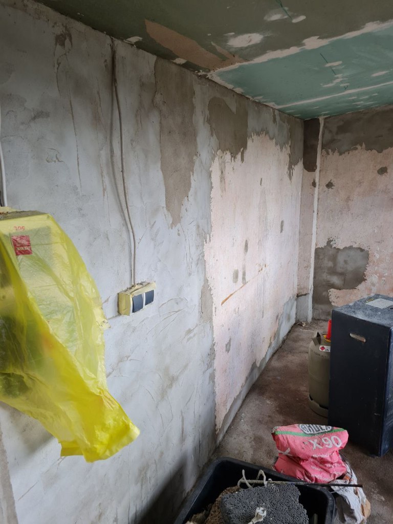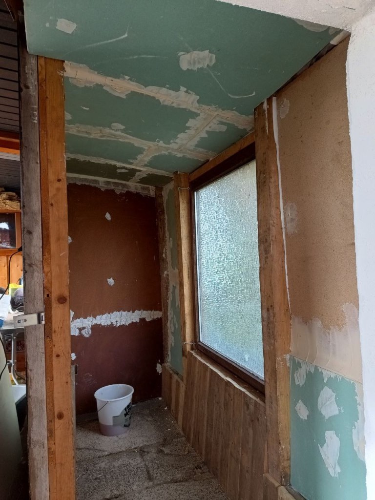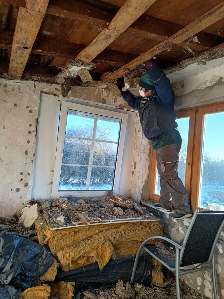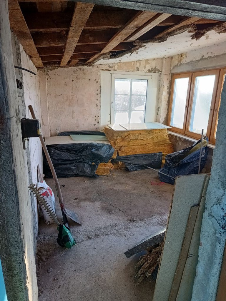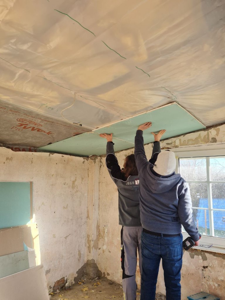 Wir haben die Decke komplett erneuert, wie ihr hier auf den Bildern sehen könnt und alles verputzt und gestrichen.