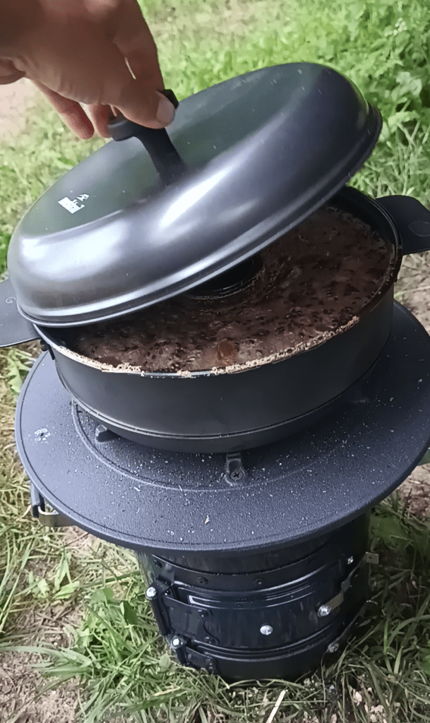 Unterwegs kochen und backen wir mit unserem Campingbackofen (Wir hatten mal das Glück, ne günstige Variante zu ergattern) auf einem kleinen Raketenofen “Kesser” oder einer Einkochherdplatte. Bei letzterem ist allerdings etwas mehr Geduld gefragt. Aber es funktioniert wunderbar, und gerade über dem Feuer gibt es dazu eine schöne rauchige Note.