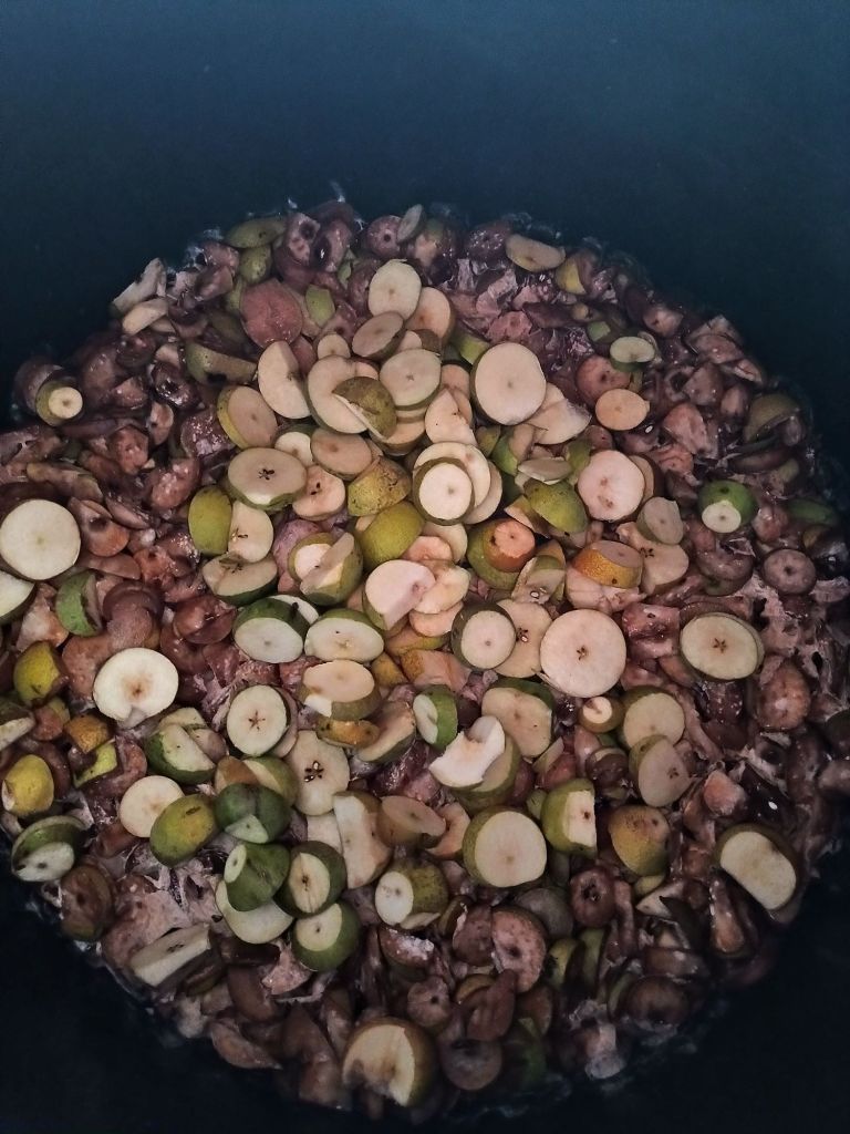 Eine Erfahrung war es „Schnaps“ herzustellen. 😉 Gemeinsam begannen wir, täglich die gefallenen Birnen unterm Baum aufzulesen. Diese schnitten wir klein sammelten sie in einem Fass. Dort sollen sie nun fermentieren, um absolut natürlichen Alkohol herzustellen. Später wird dieser noch im Dorf gebrannt. Leider werden wir dann nicht mehr hier sein.